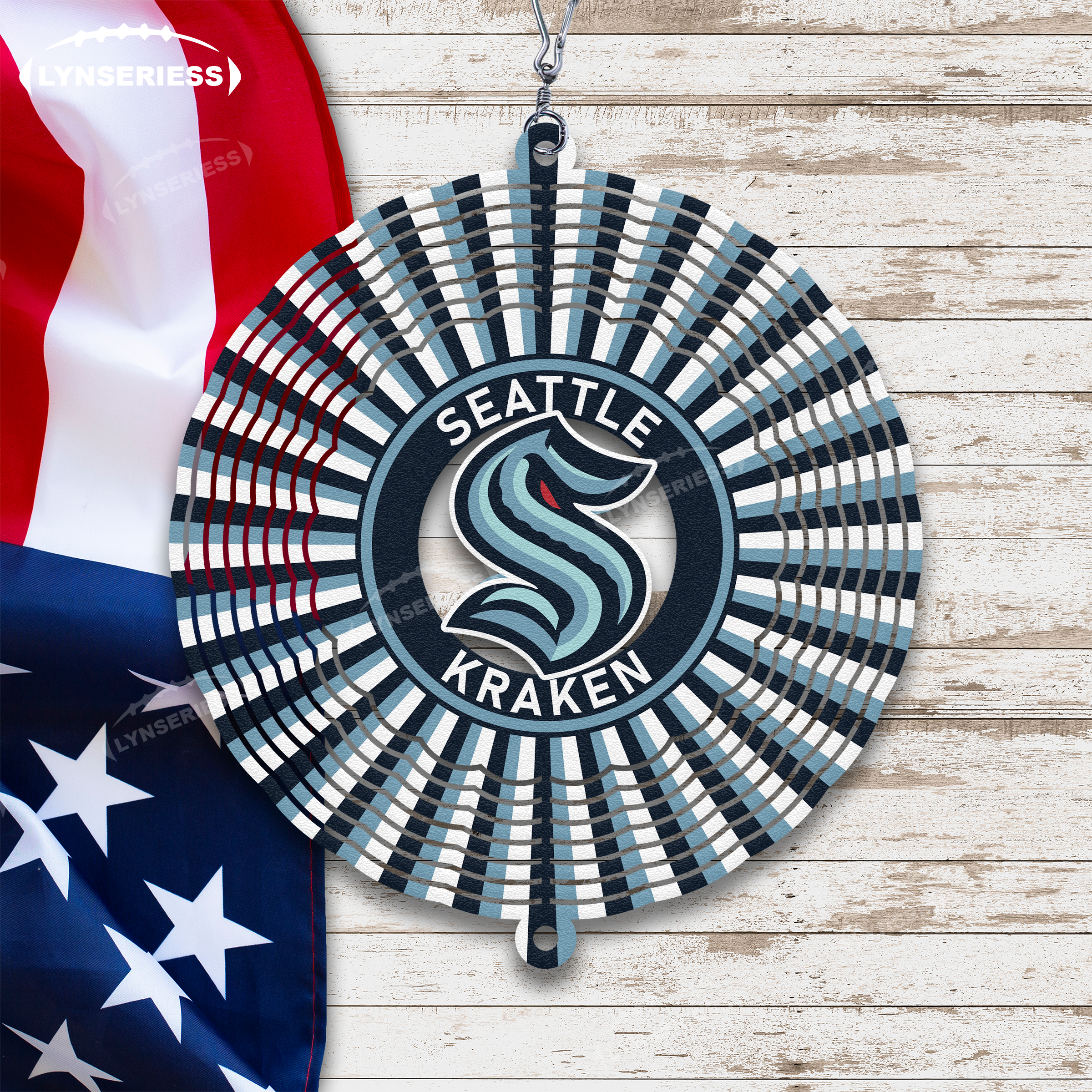 NHL Seattle Kraken Artwork Metal Printed Wind Spinner Outdoor Decor