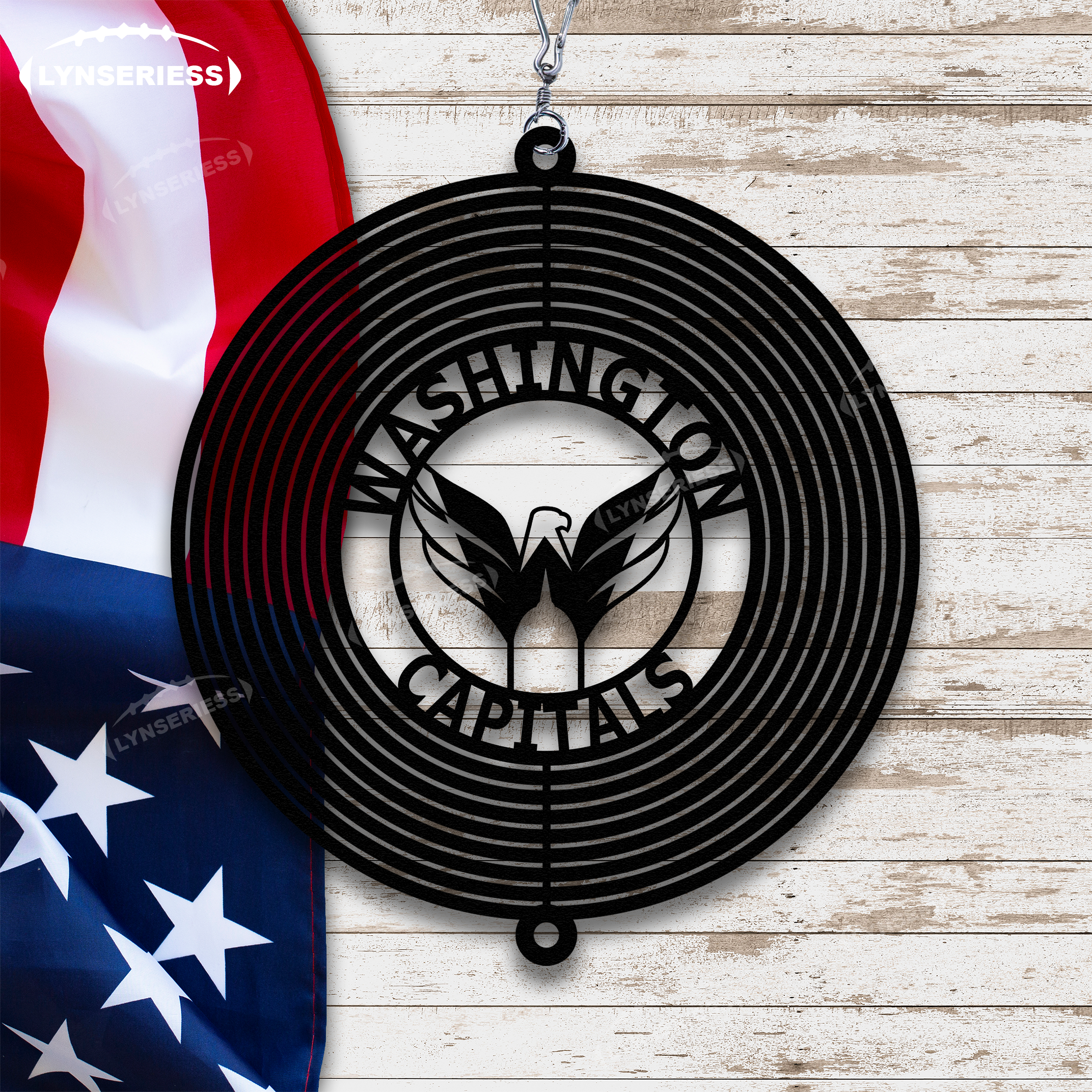 NHL Washington Capitals Artwork Black Or Natural Rust Wind Spinner Outdoor Decor