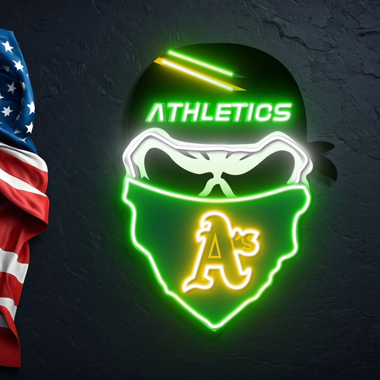 Oakland Athletics Skull Neon LED Sign MLB Acrylic Artwork Home Decor