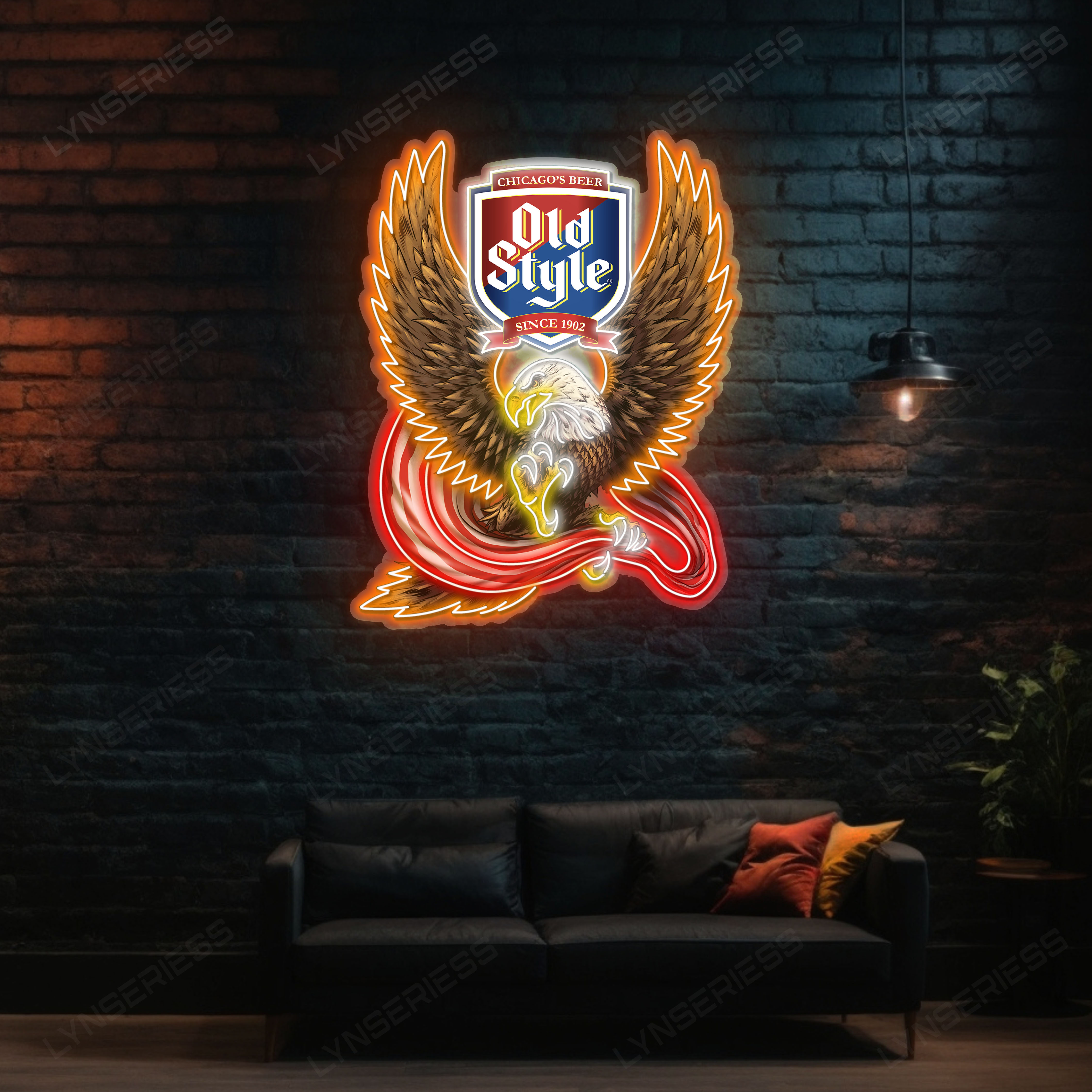 Old Style Logo Custom American Eagle LED Sign Acrylic Artwork Home Bar Pub Wall Hanging Decor