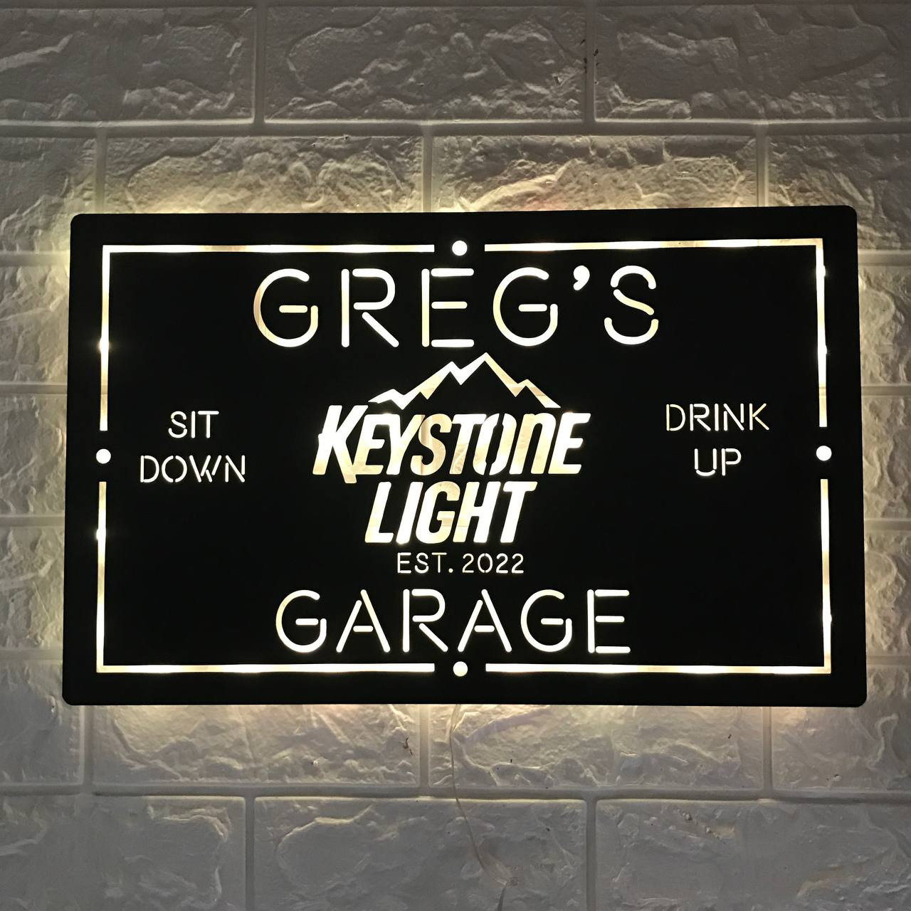 Personalised Keystone Light Name Metal Sign LED Light Home Bar Wall Art Decor