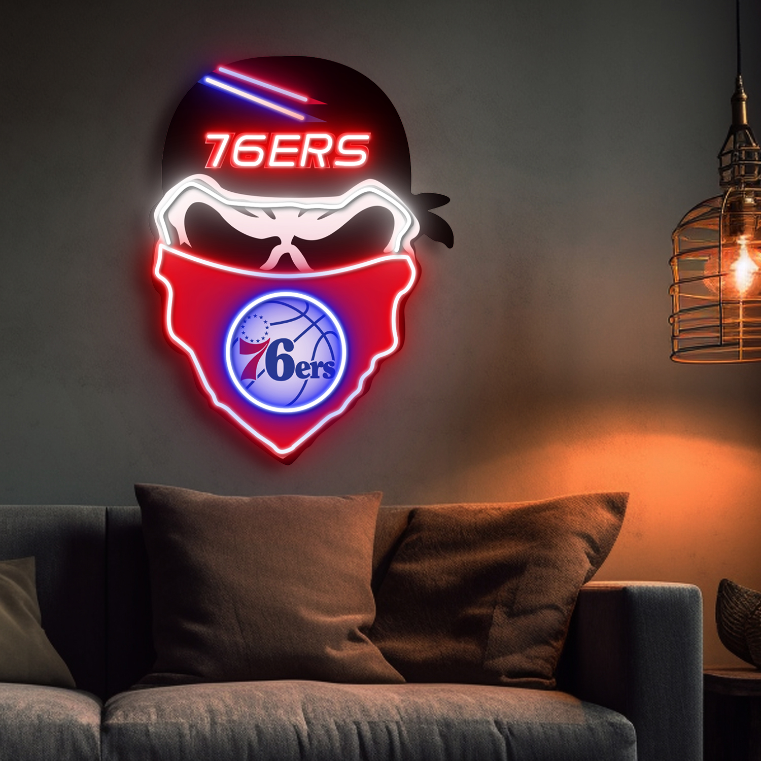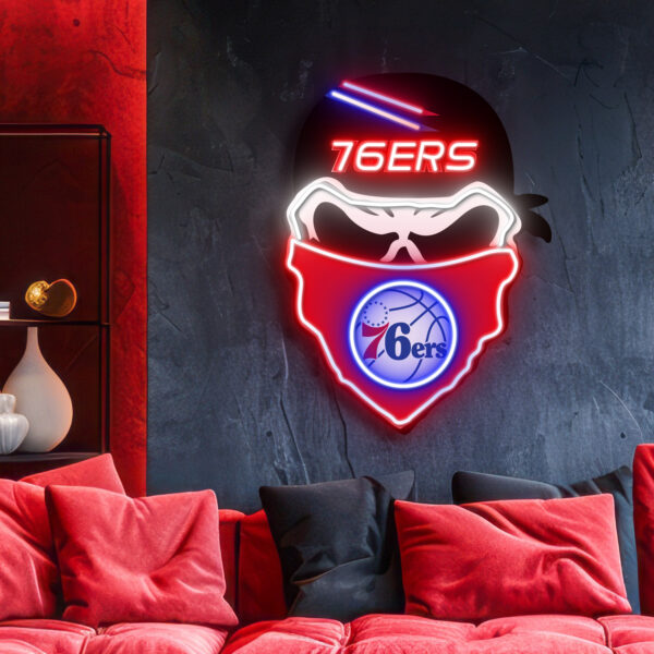 Philadelphia 76ers Skull Neon LED Sign NBA Acrylic Artwork Home Decor