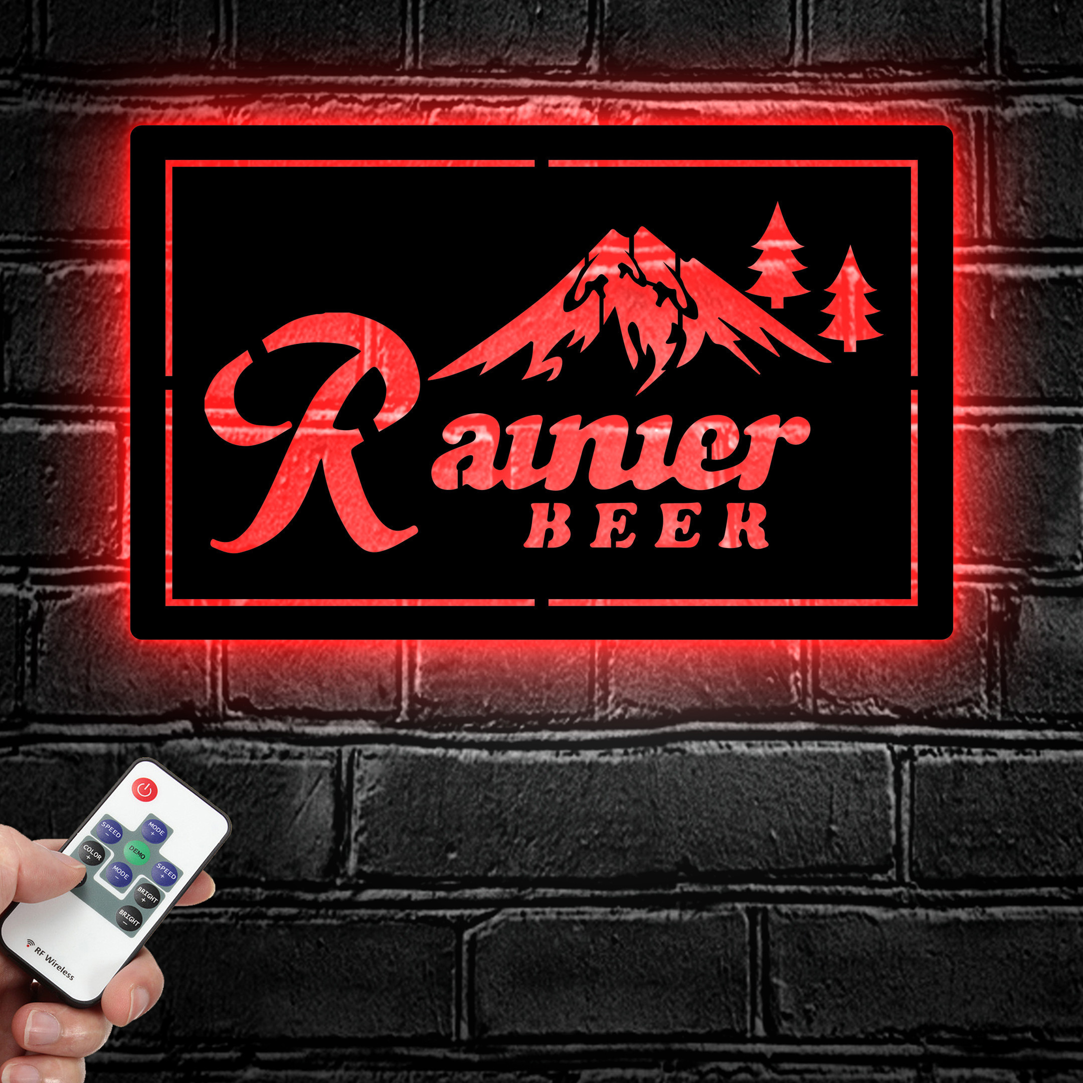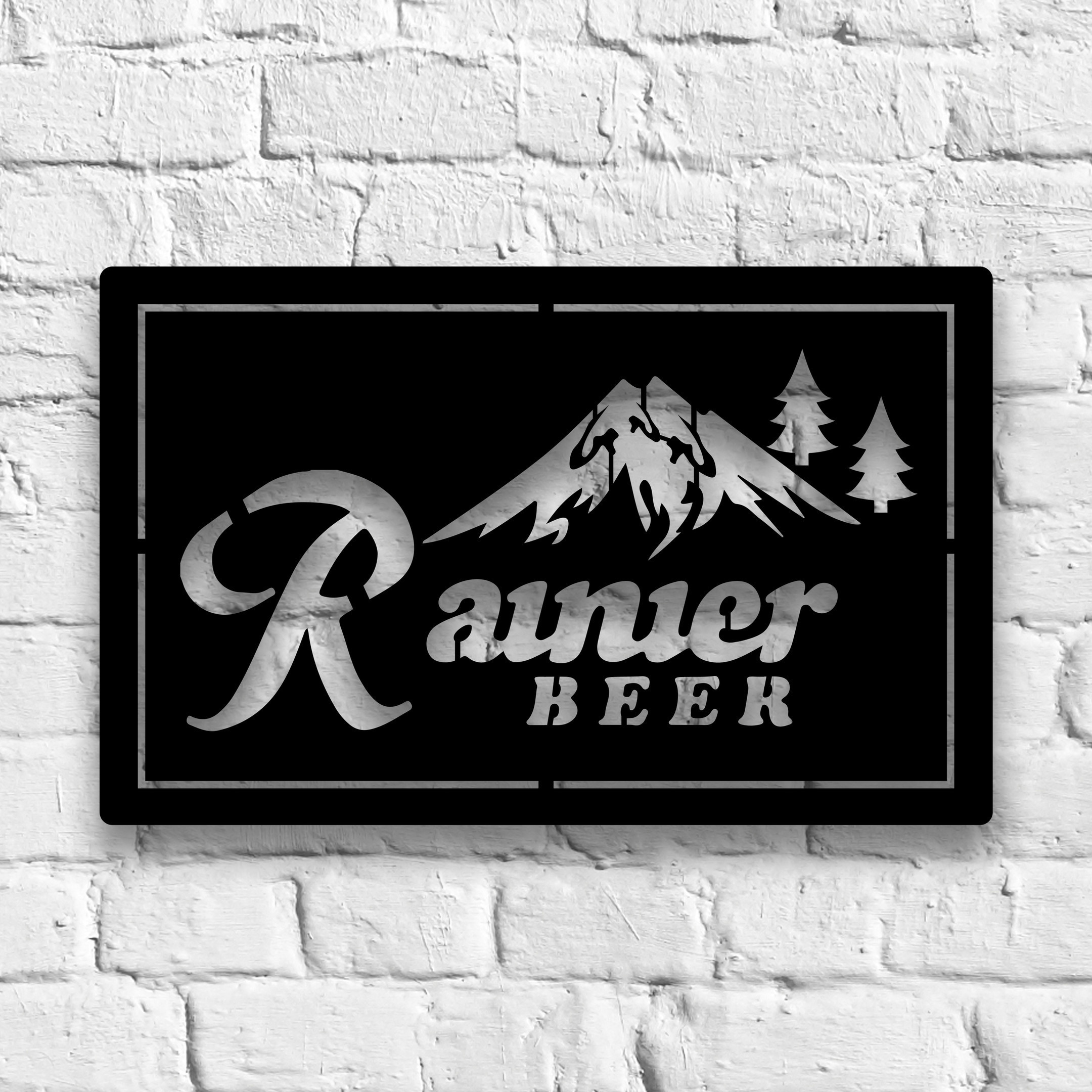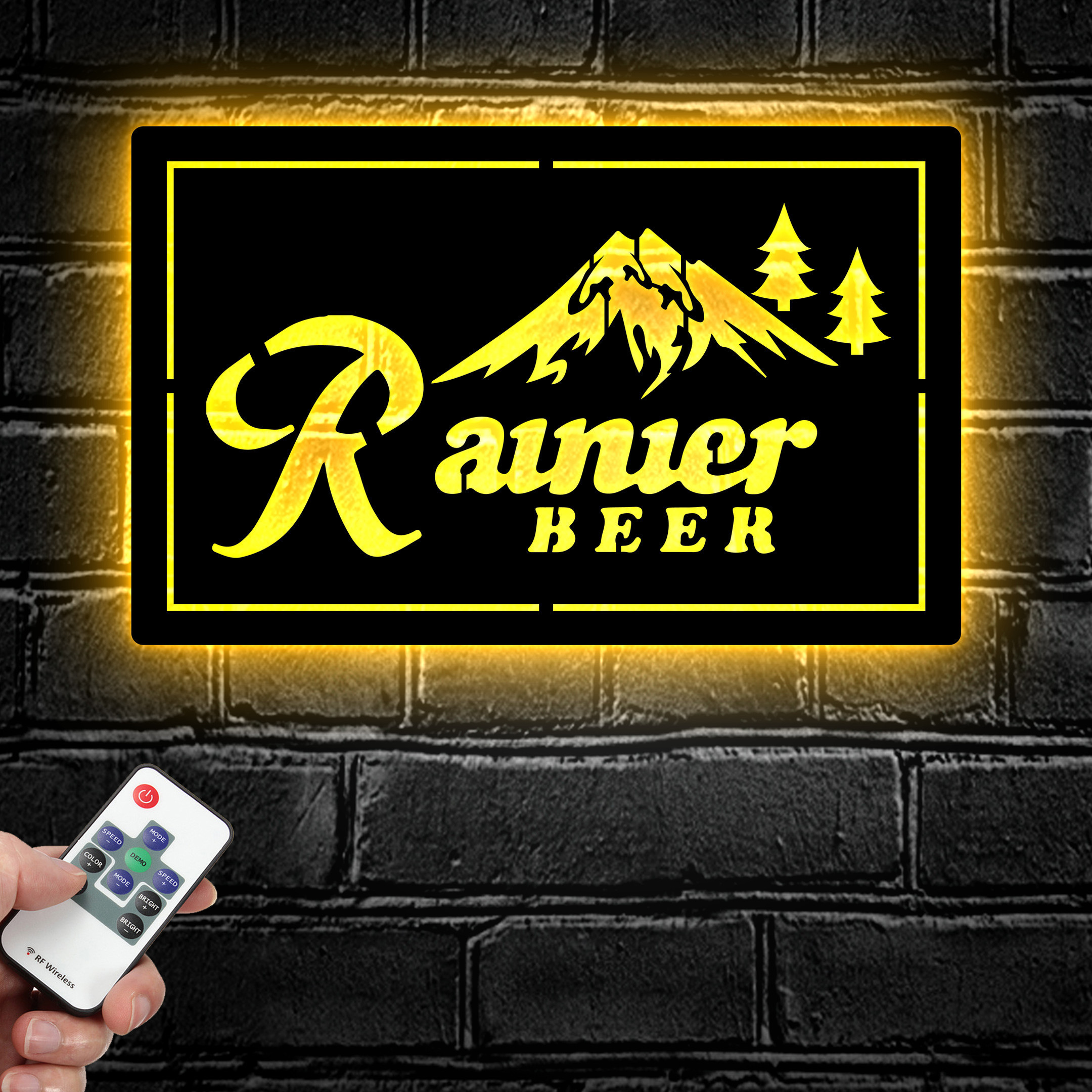 Rainier Club Mountain Metal Sign LED Light Home Bar Wall Art Decor