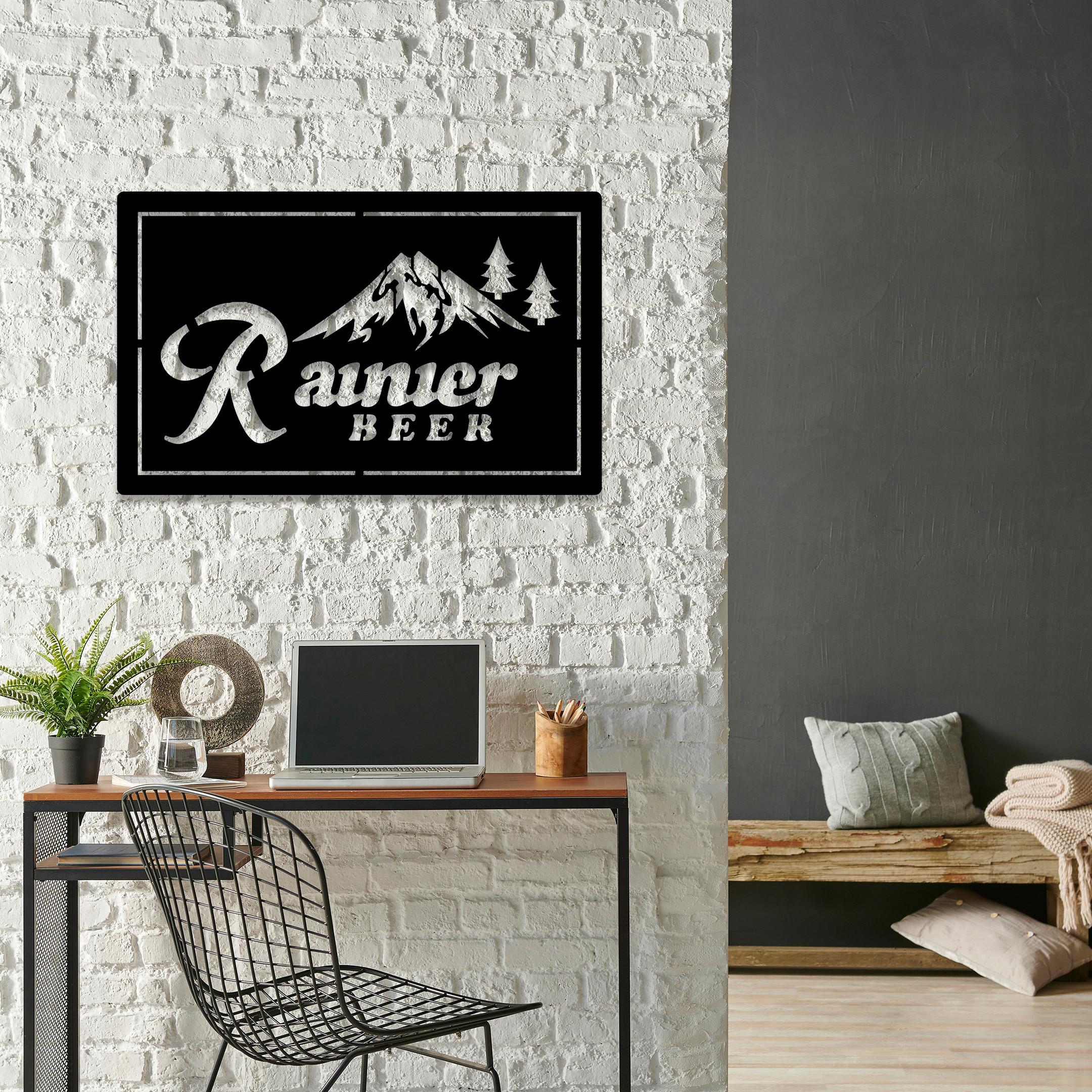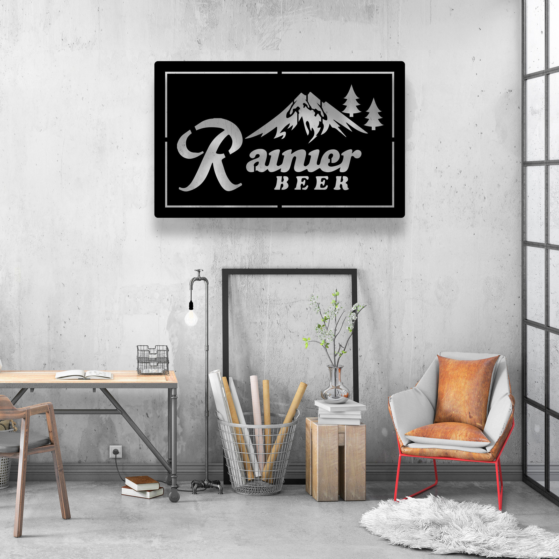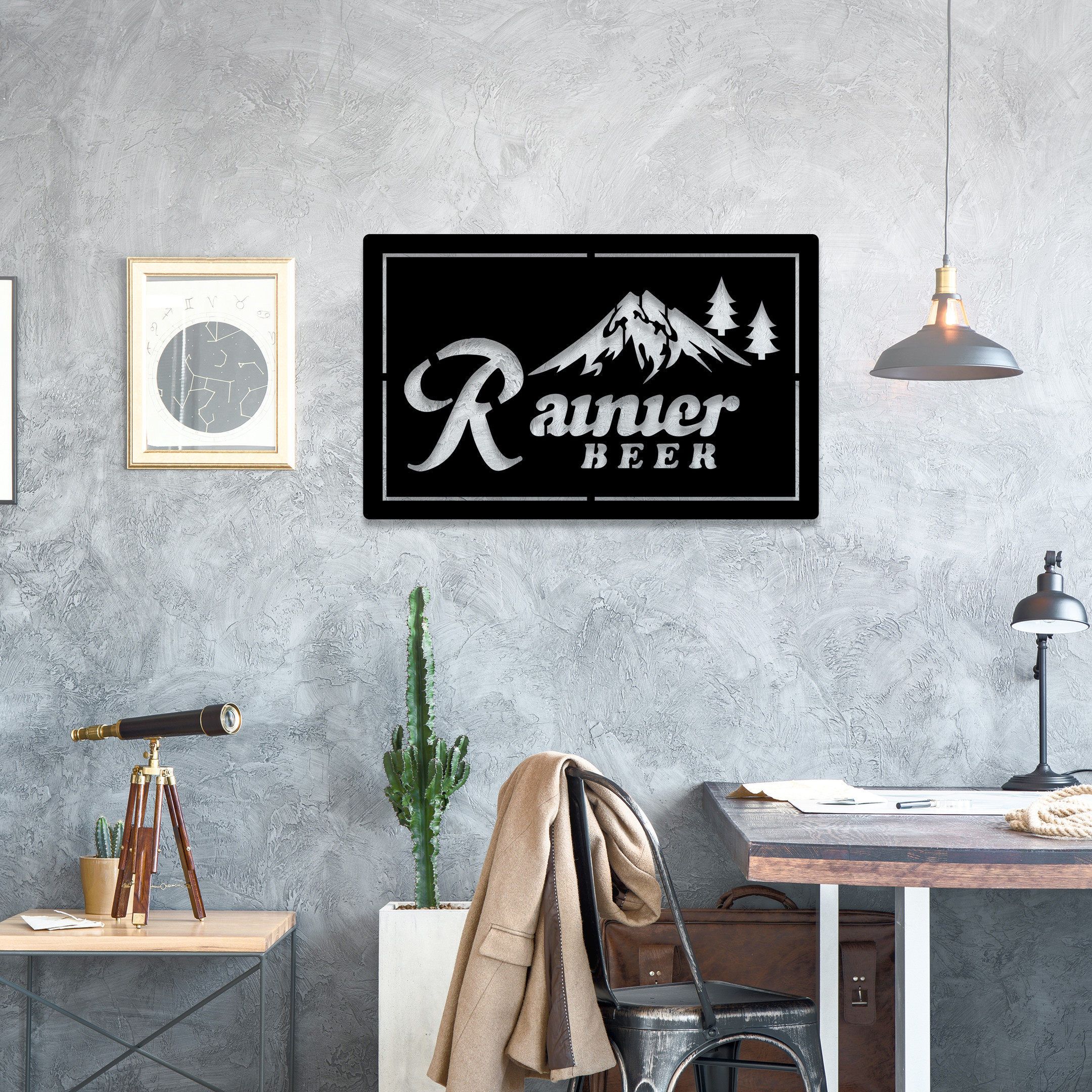 Rainier Club Mountain Metal Sign LED Light Home Bar Wall Art Decor