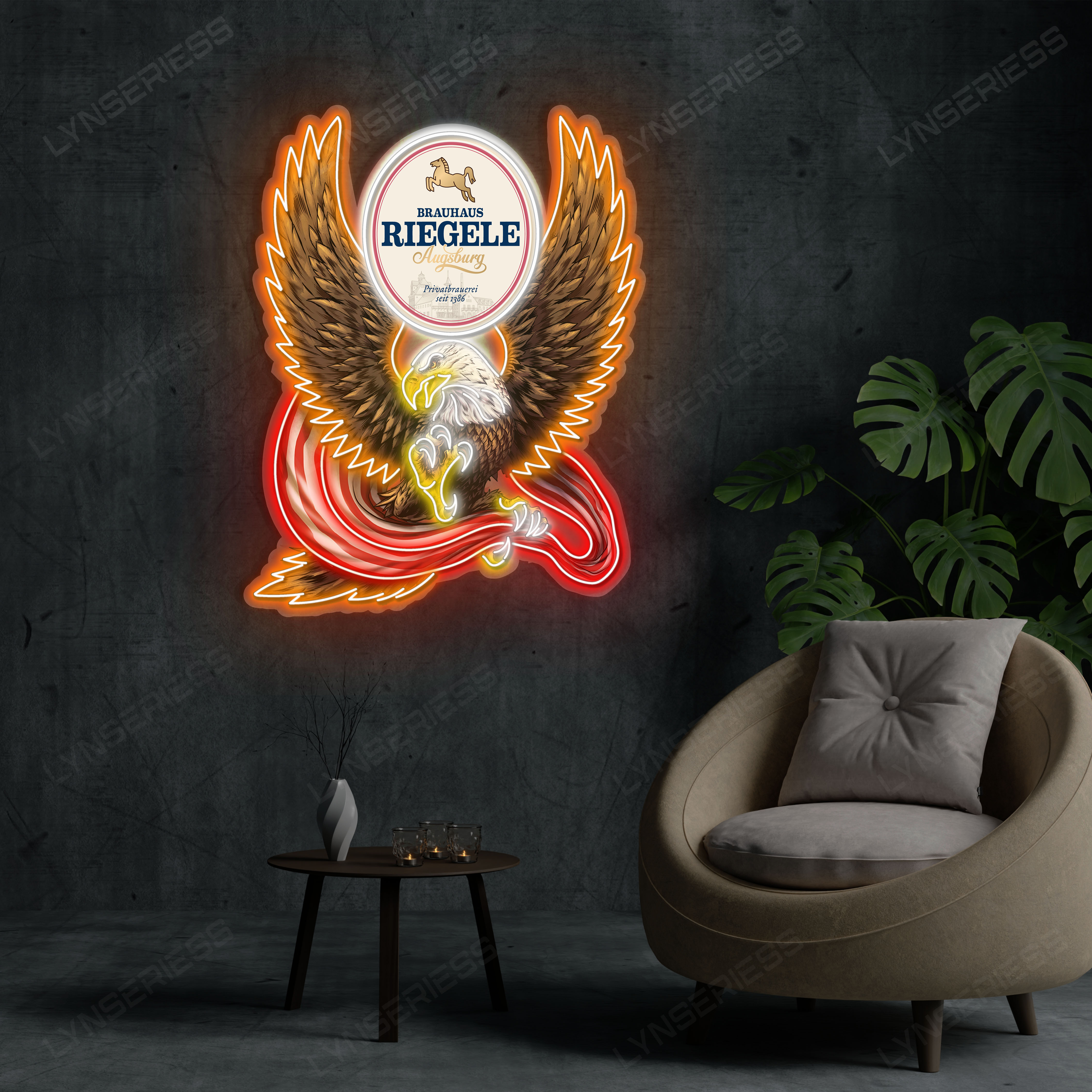 Riegele Logo Custom American Eagle LED Sign Acrylic Artwork Home Bar Pub Wall Hanging Decor