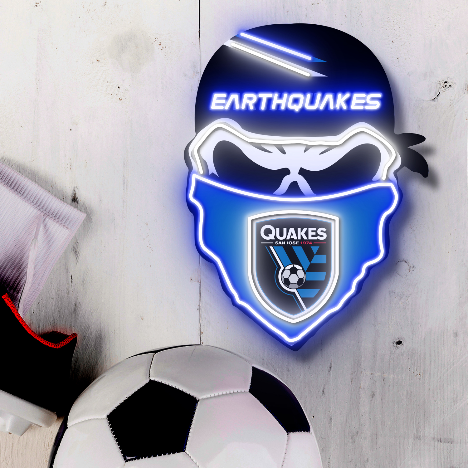 San Jose Earthquakes FC Skull Neon LED Sign MLS Acrylic Artwork Home Decor