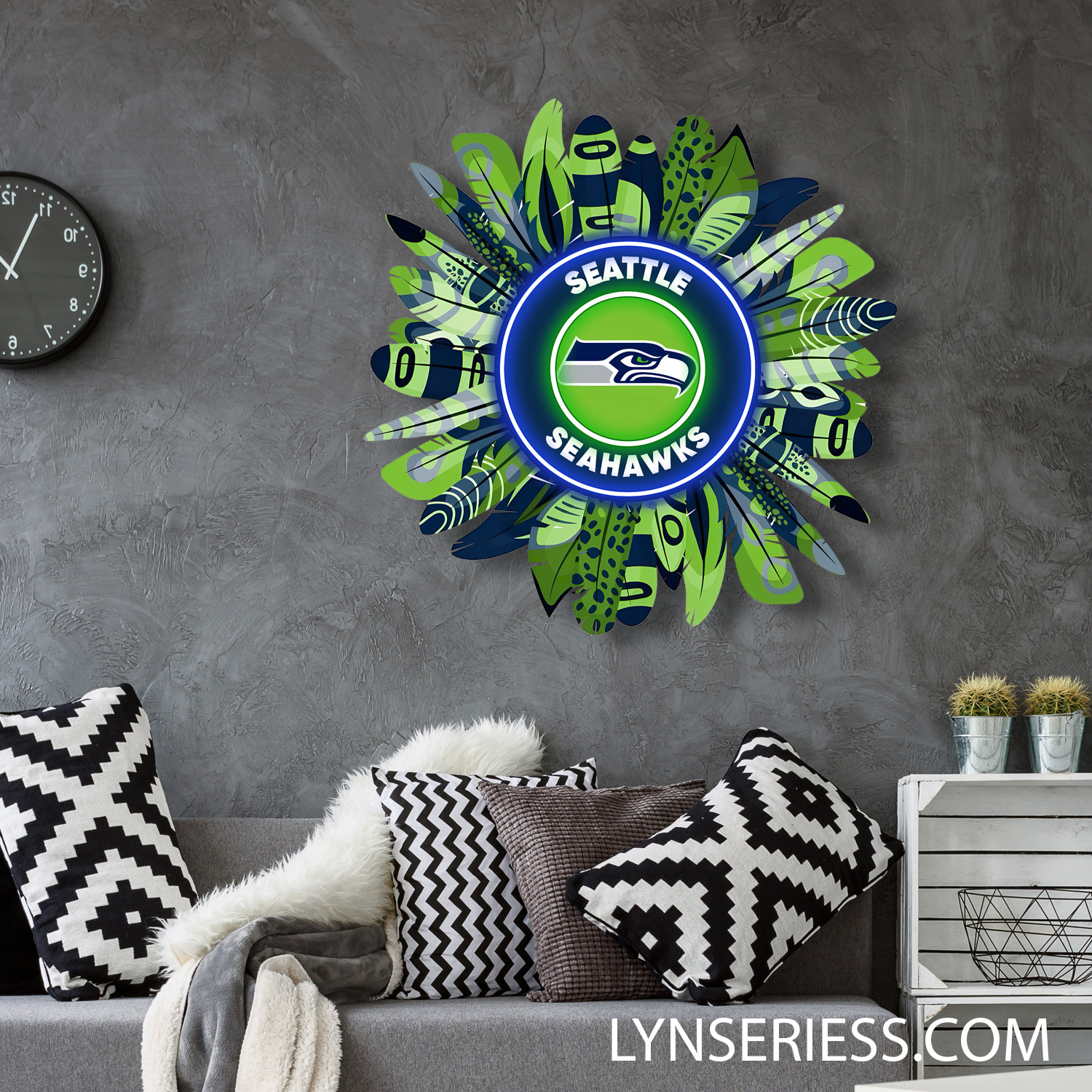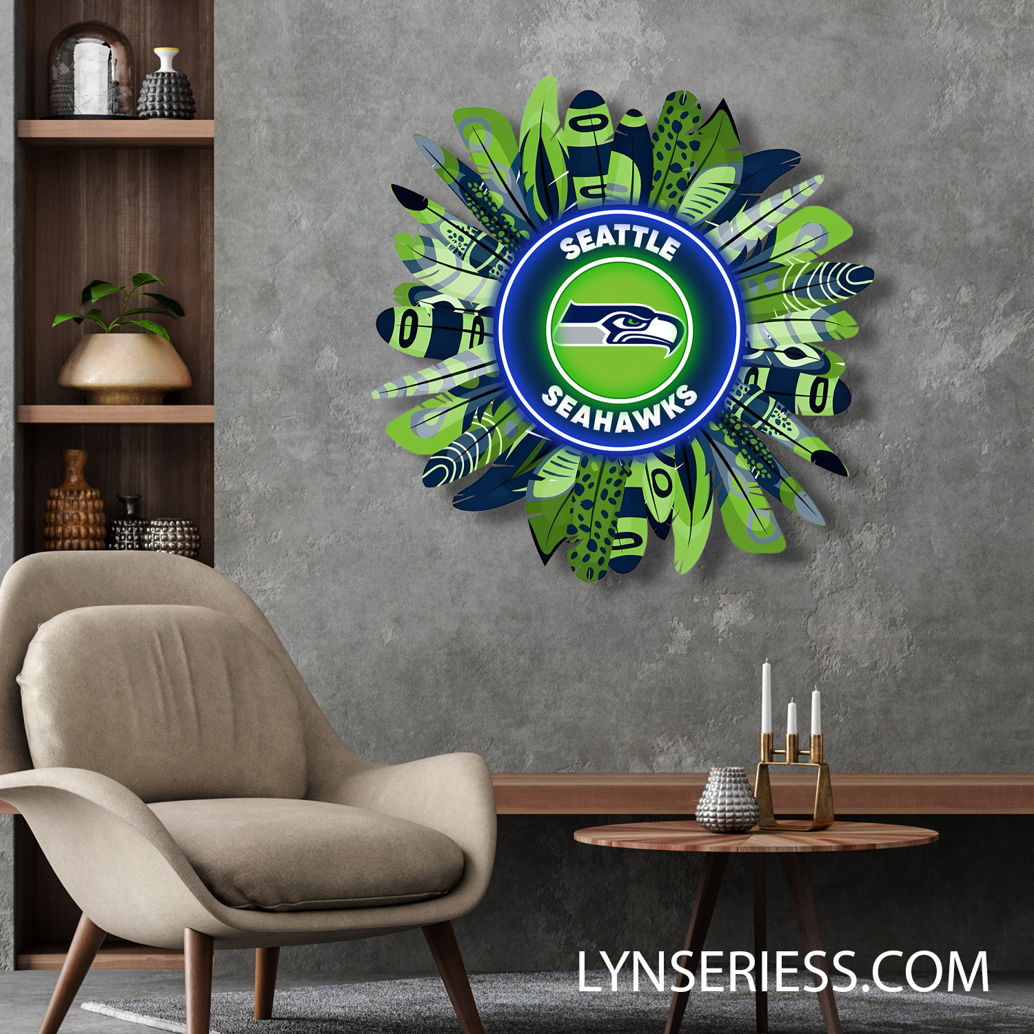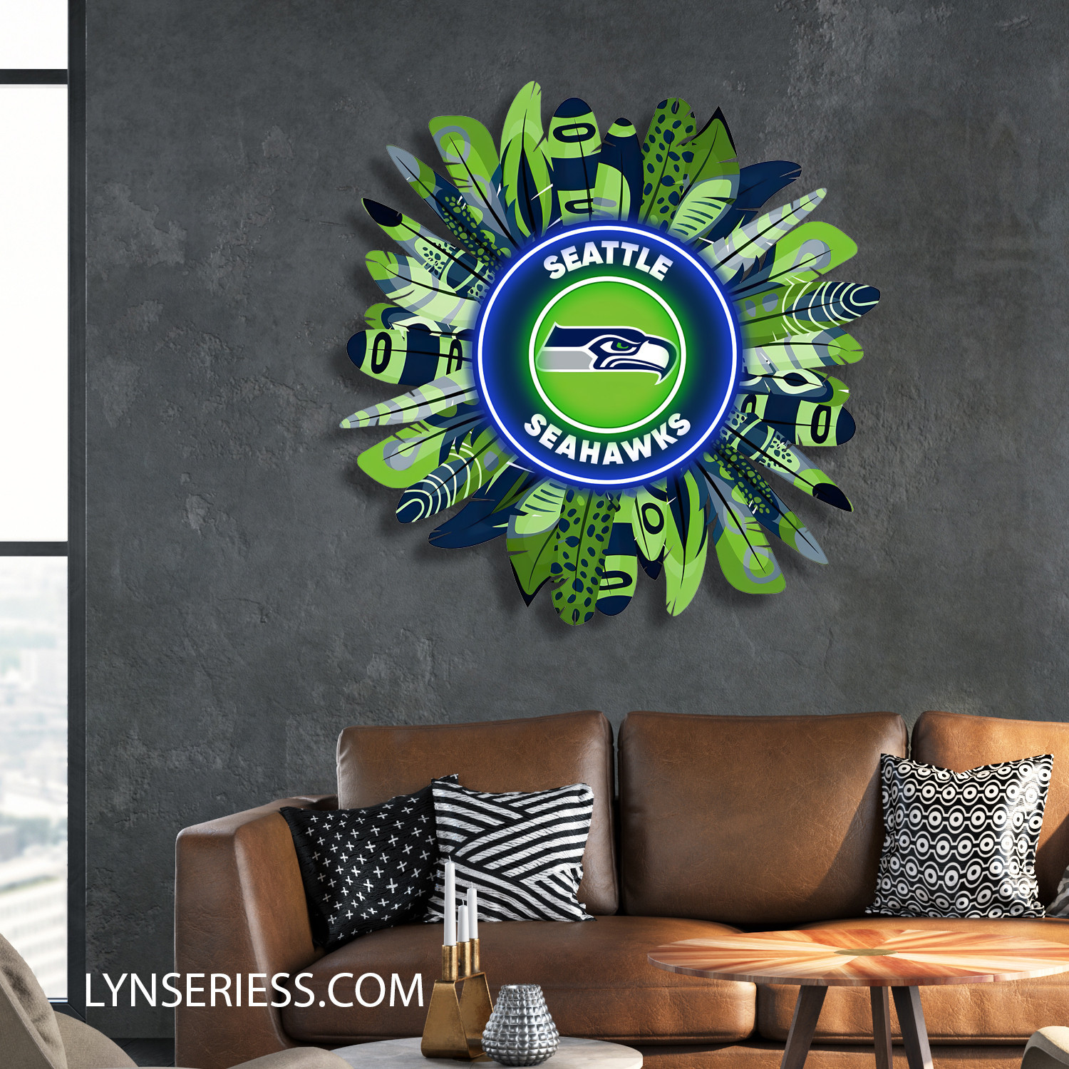 Seattle Seahawks Wreath Neon LED Sign NFL Acrylic Artwork Wall Art Home Decor