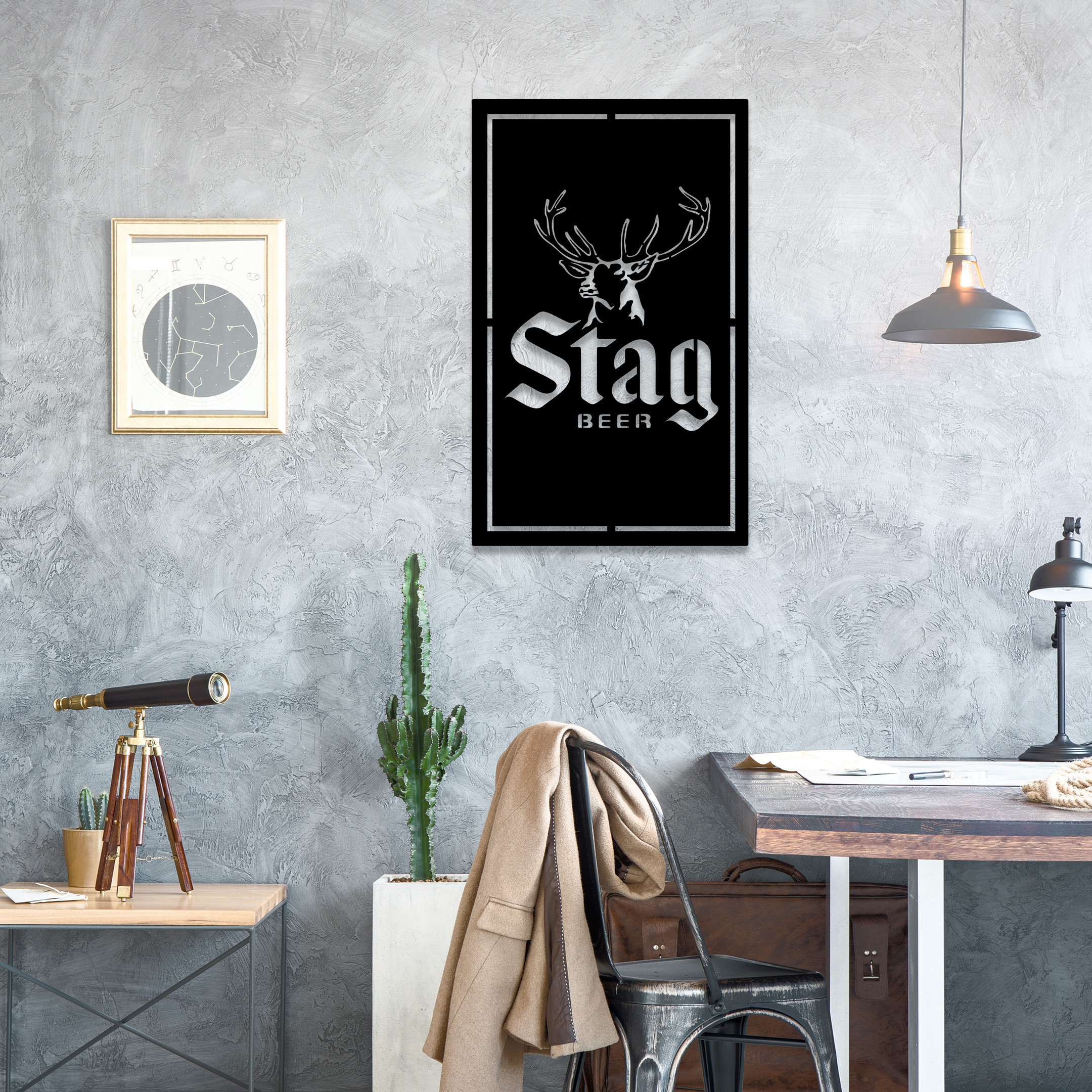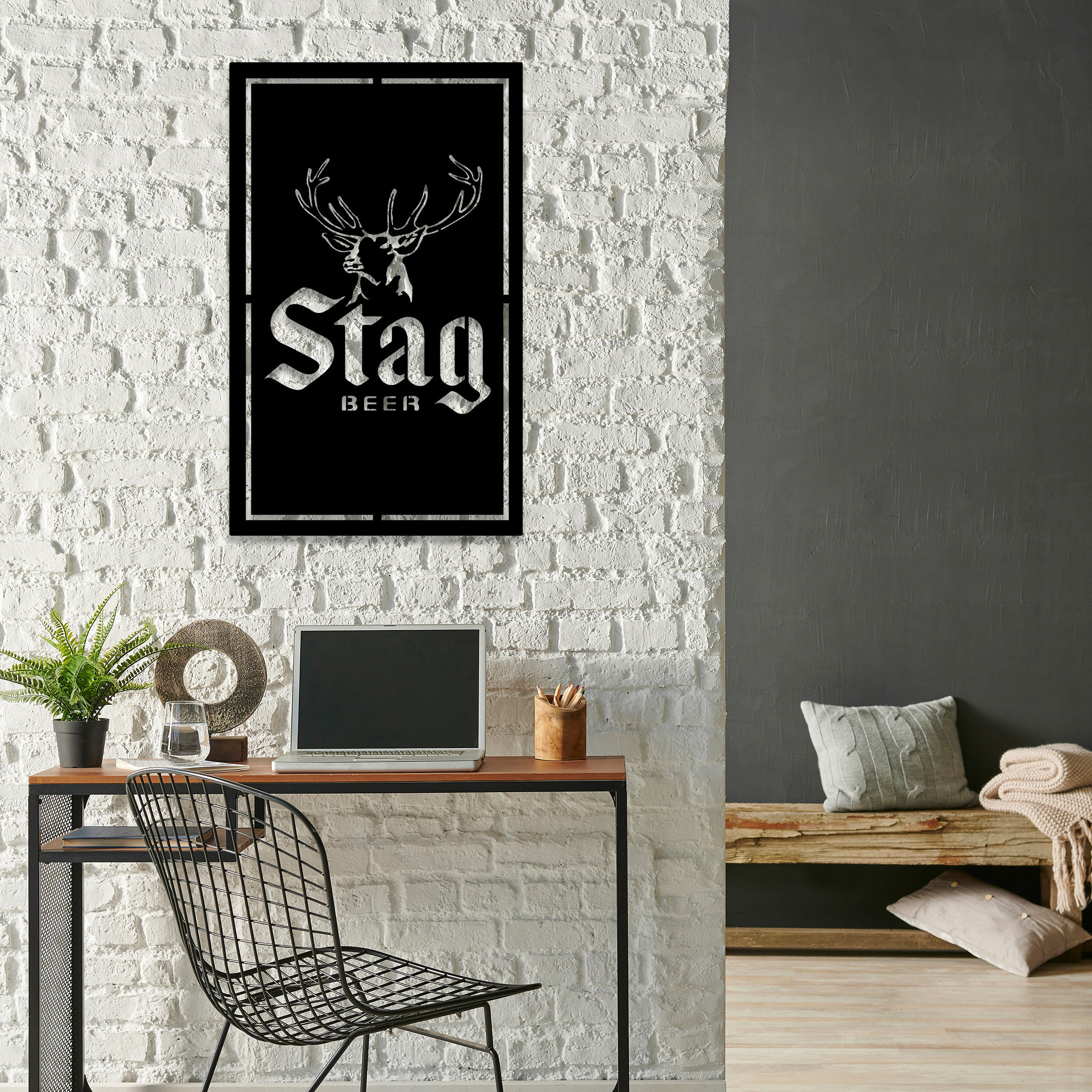 Stag Deer Head Metal Sign LED Light Home Bar Wall Art Decor