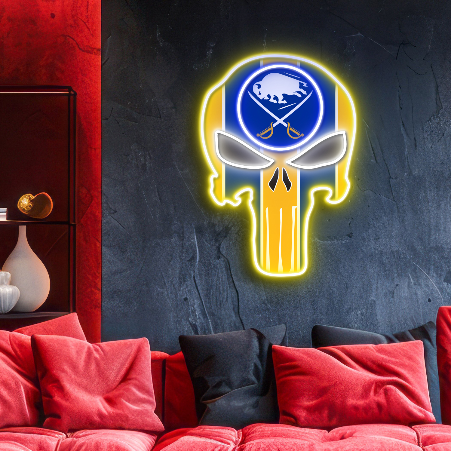 The Punisher Buffalo Sabres Neon LED Sign NHL Acrylic Artwork Wall Art Home Decor