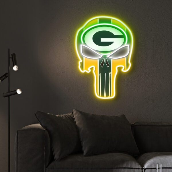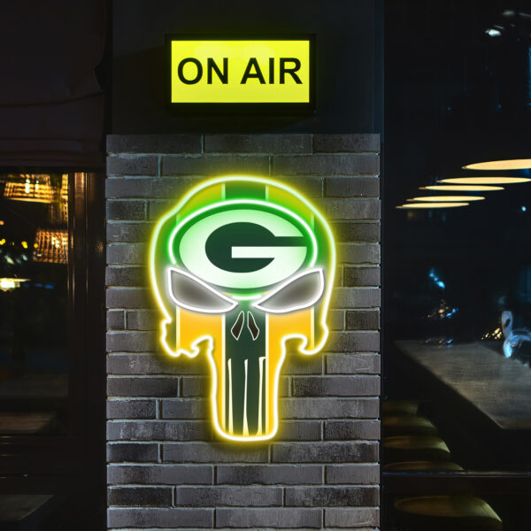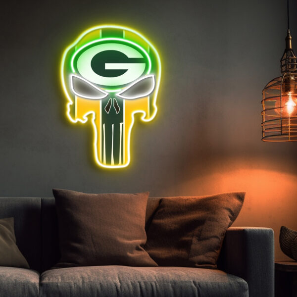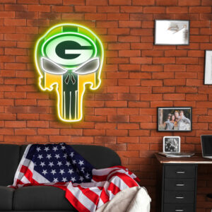 The Punisher Green Bay Packers Neon LED Sign NFL Acrylic Artwork Wall Art Home Decor
