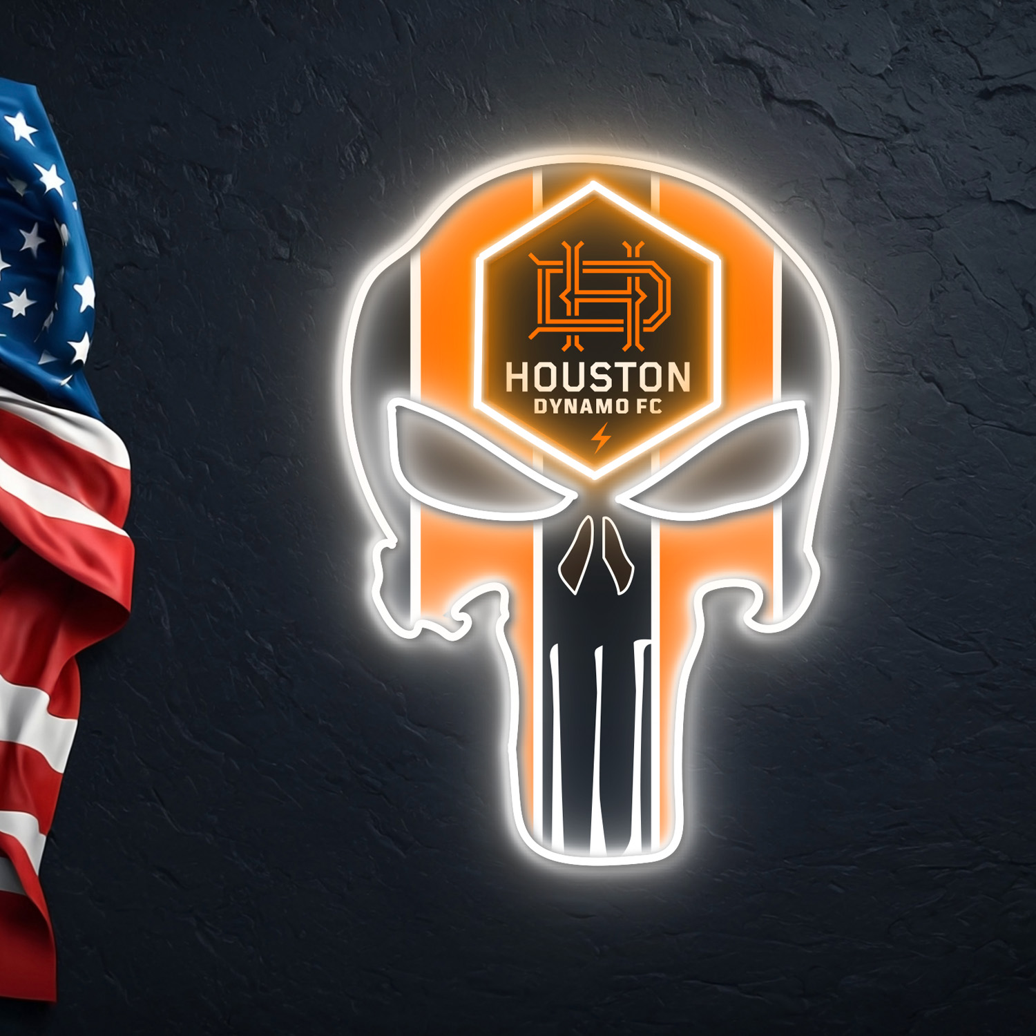 The Punisher Houston Dynamo FC Neon LED Sign MLS Acrylic Artwork Wall Art Home Decor