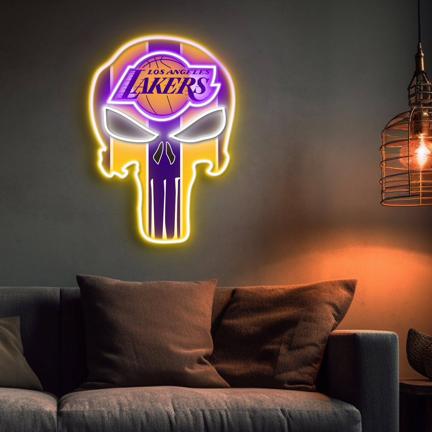 The Punisher Los Angeles Lakers Neon LED Sign NBA Acrylic Artwork Wall Art Home Decor