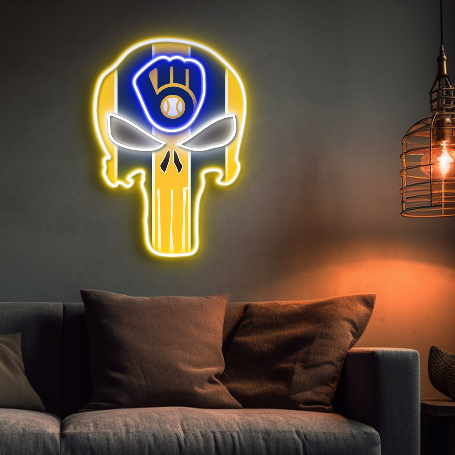 The Punisher Milwaukee Brewers Neon LED Sign MLB Acrylic Artwork Wall Art Home Decor