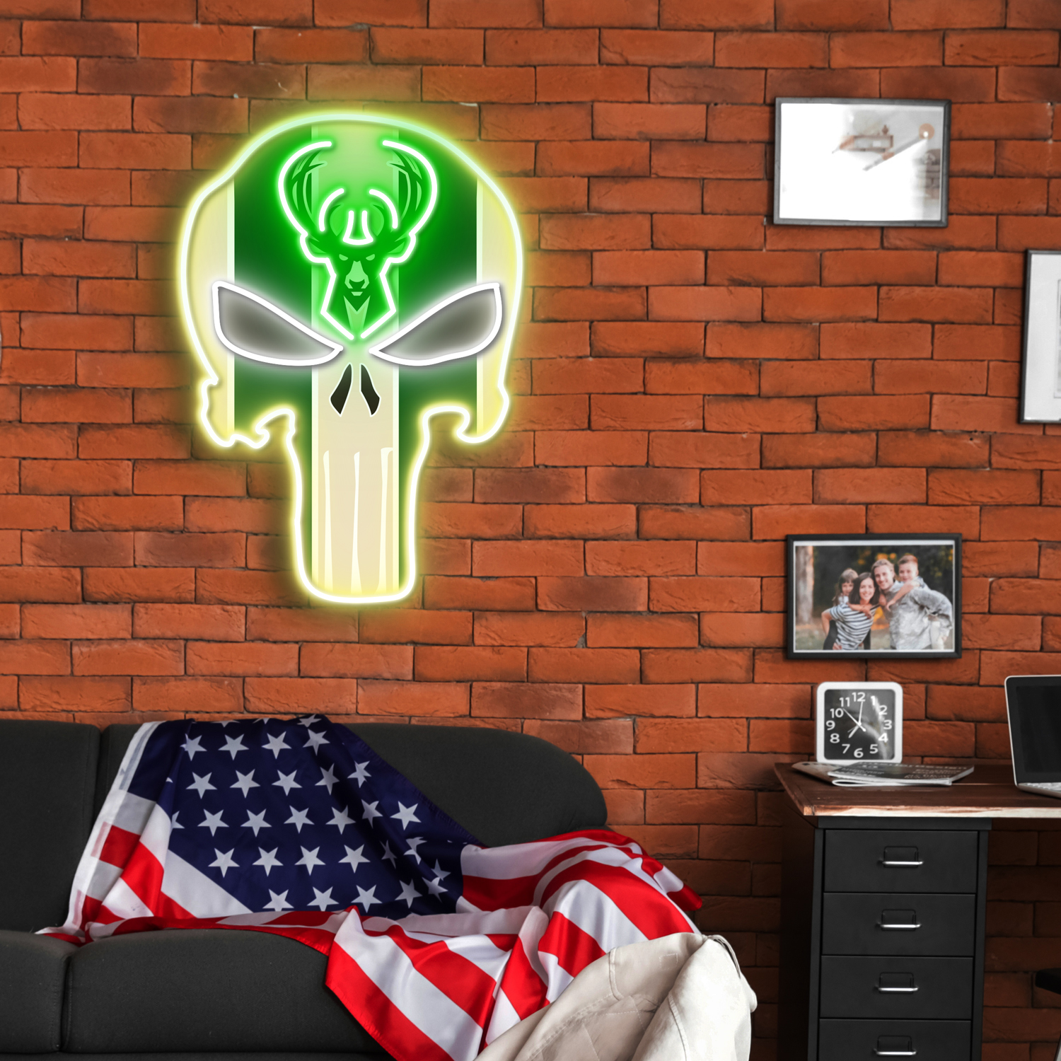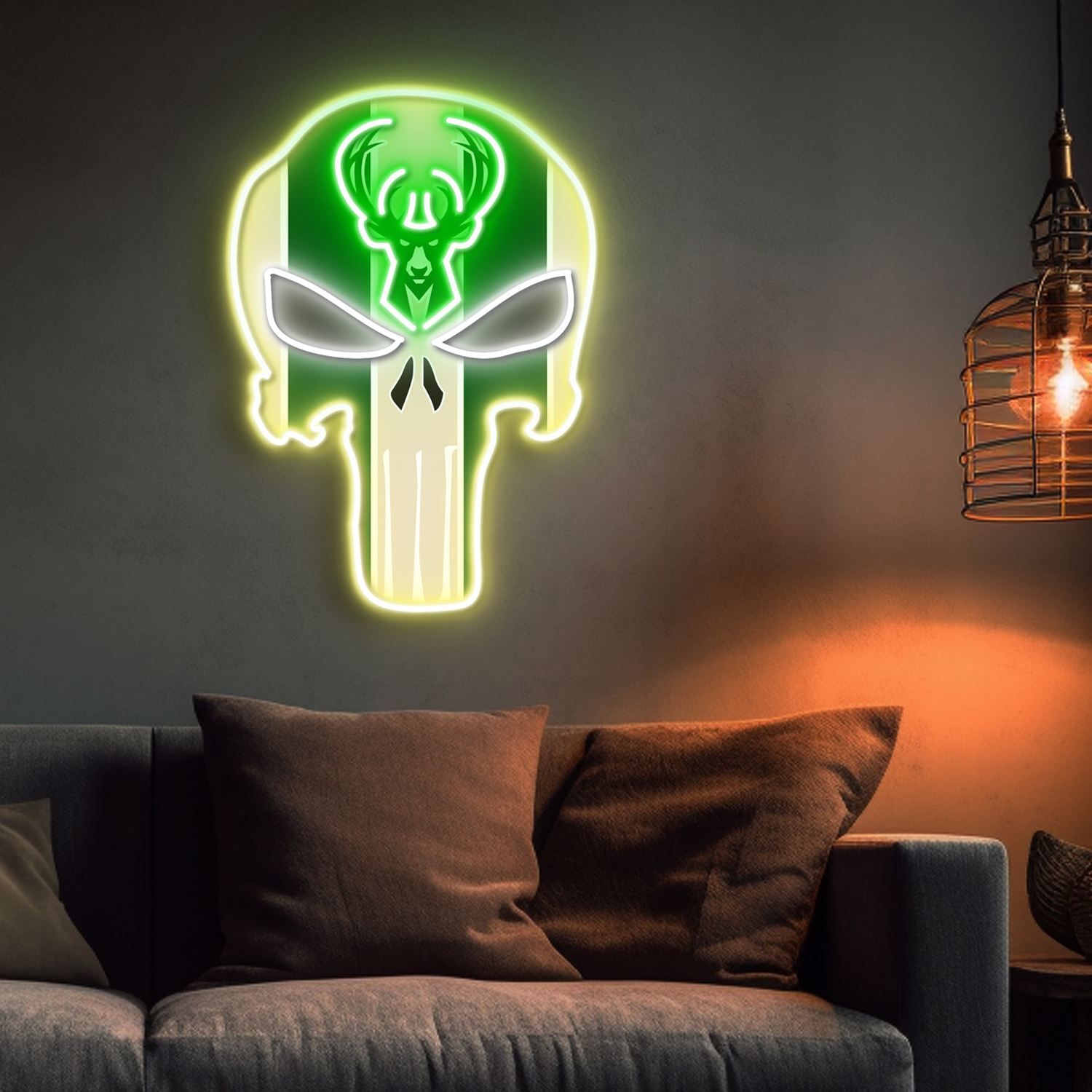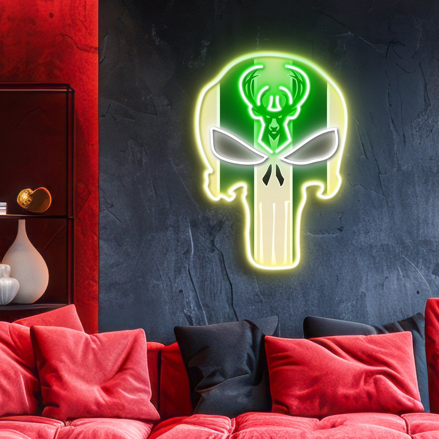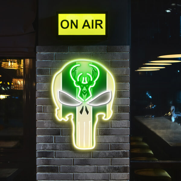The Punisher Milwaukee Bucks Neon LED Sign NBA Acrylic Artwork Wall Art Home Decor