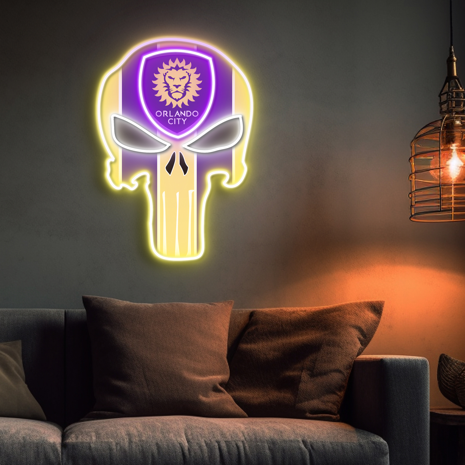 The Punisher Orlando City FC Neon LED Sign MLS Acrylic Artwork Wall Art Home Decor