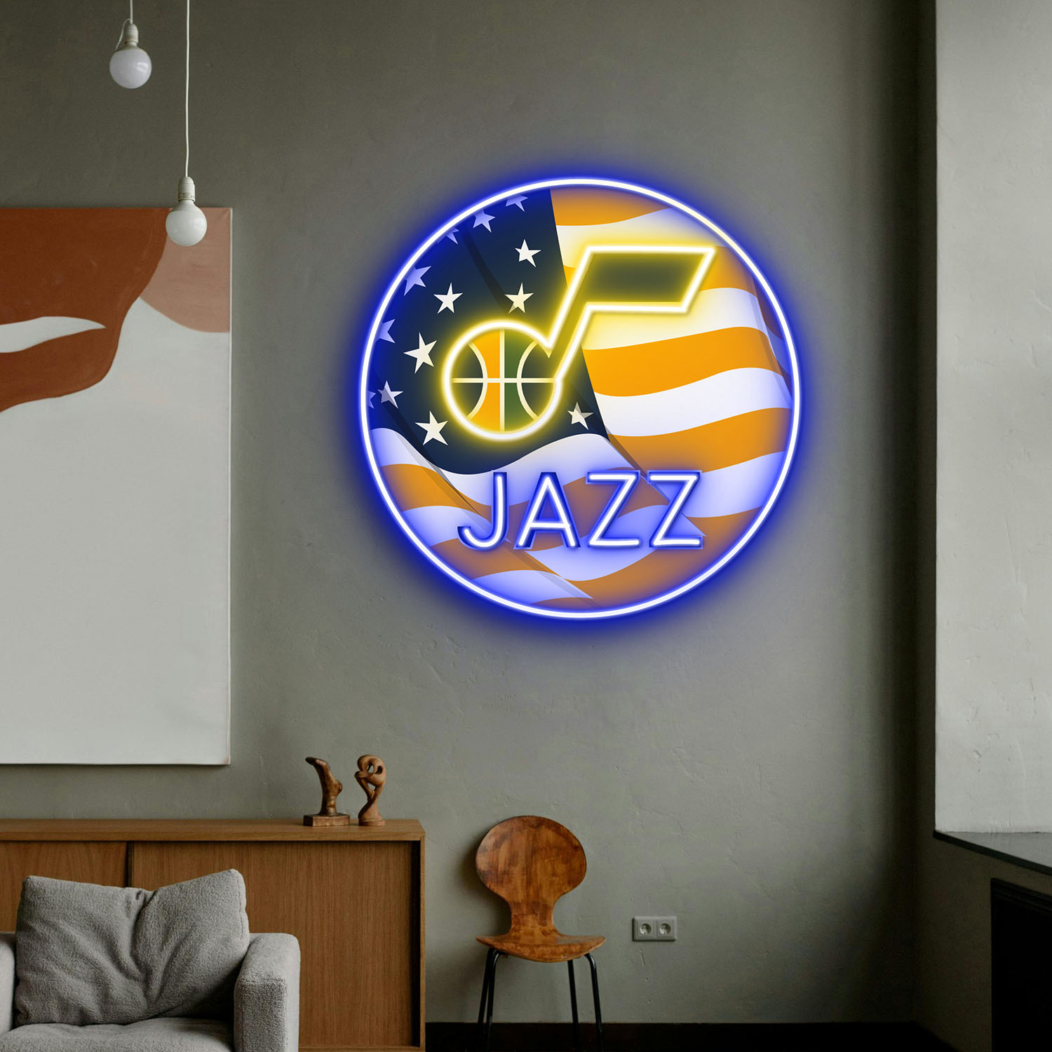 Utah Jazz US Flag Acrylic Neon LED Sign NBA Home Decor