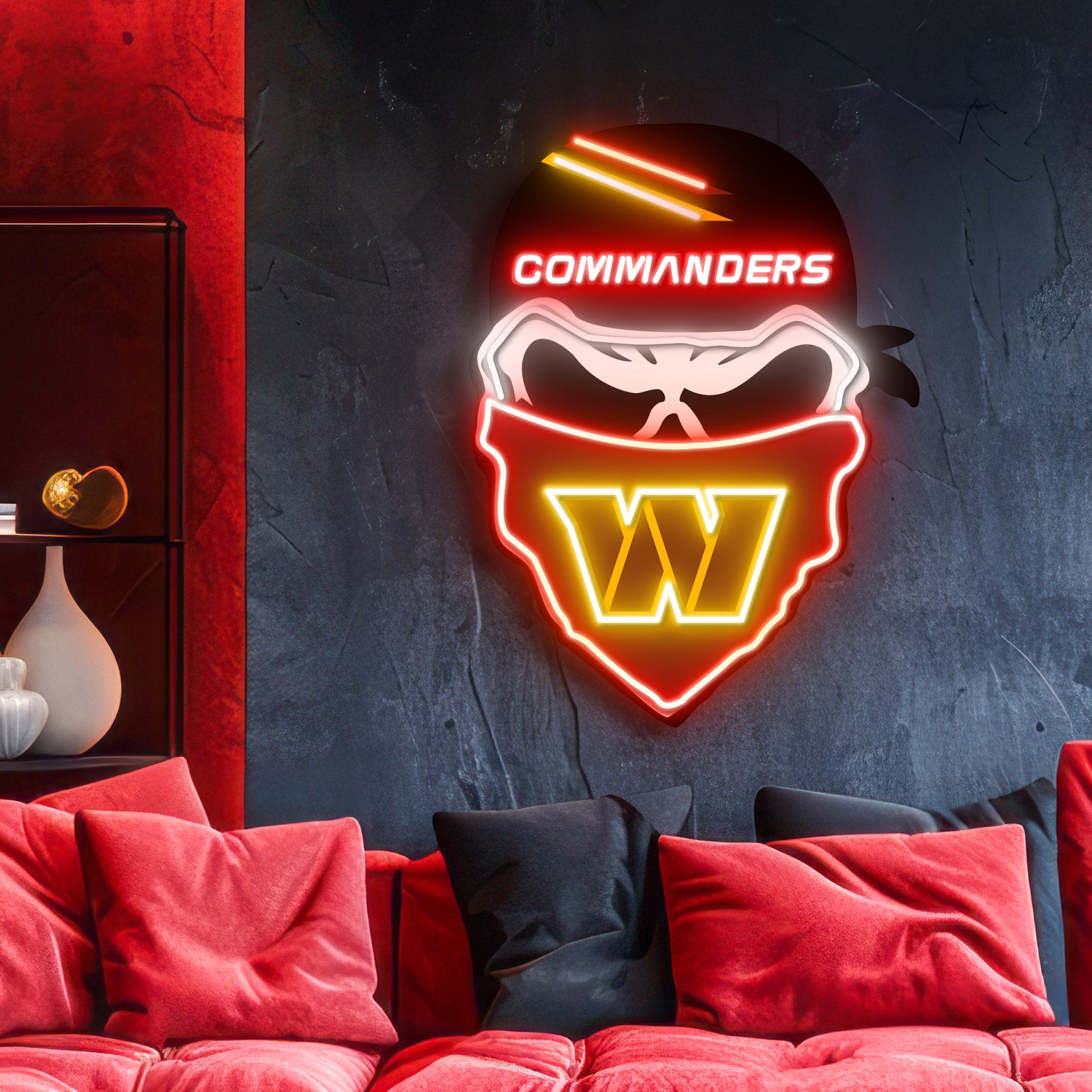 Washington Commanders Skull Neon LED Sign NFL Acrylic Artwork Home Decor